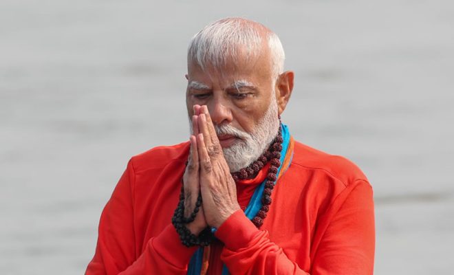 Prime Minister Narendra Modi took a ‘holy dip’ in the Sangam in Prayagraj during the Maha Kumbh, on Wednesday morning.